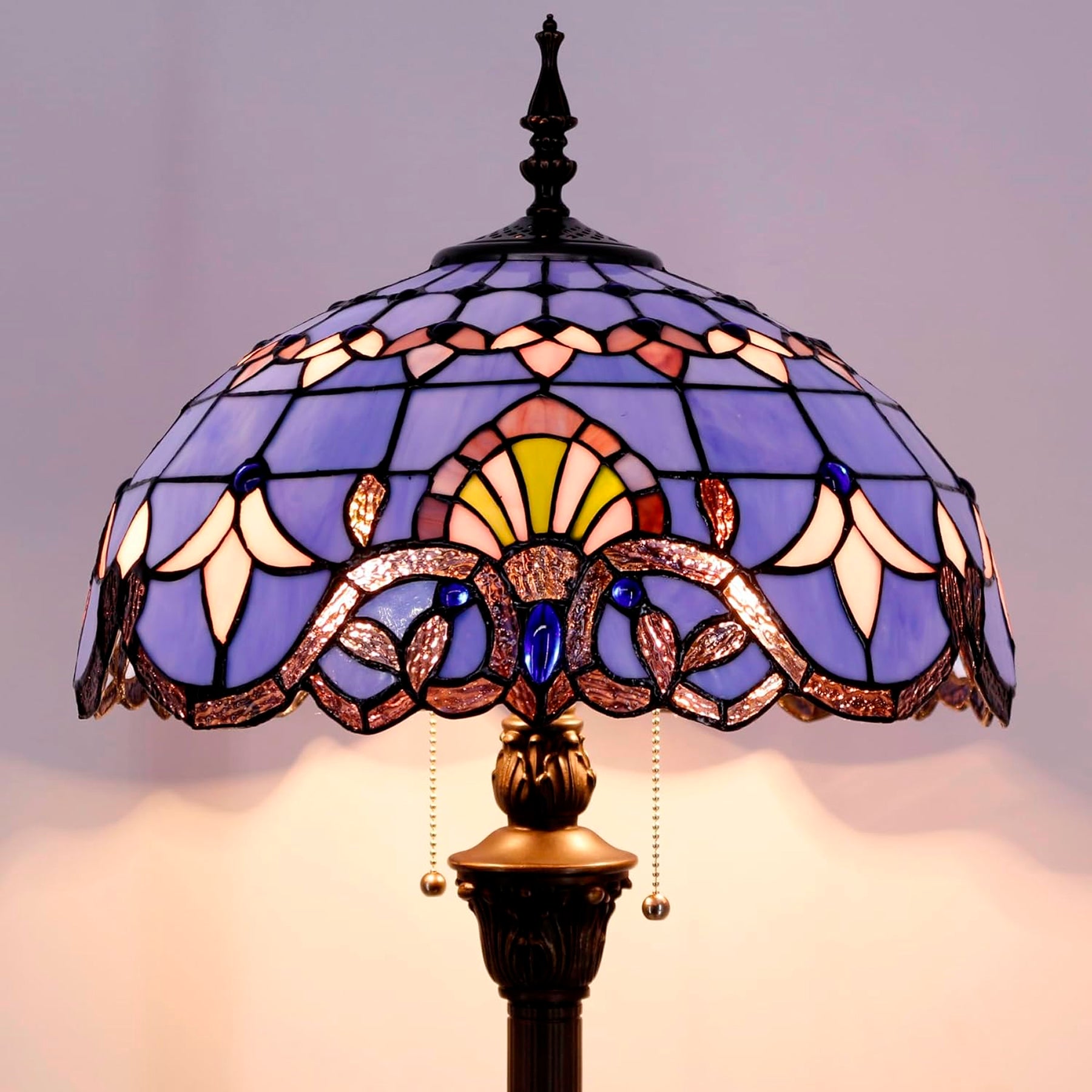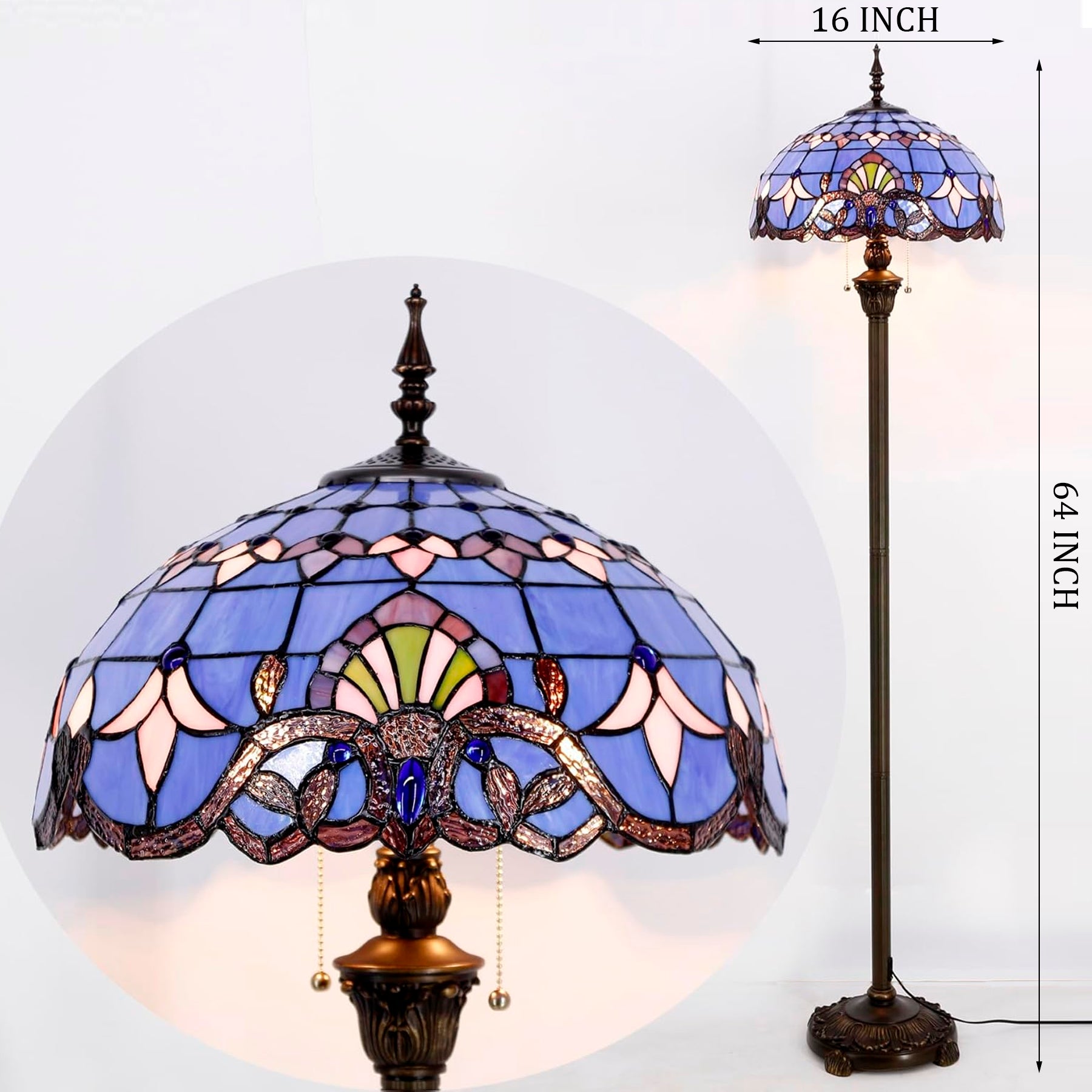 WERFACTORY Tiffany Floor Lamp Blue Purple Baroque Stained Glass Standing Reading Light 16X16X64 Inches Antique Pole Corner Lamp Decor Bedroom Living Room Home Office (LED Bulb Included) S003C Series