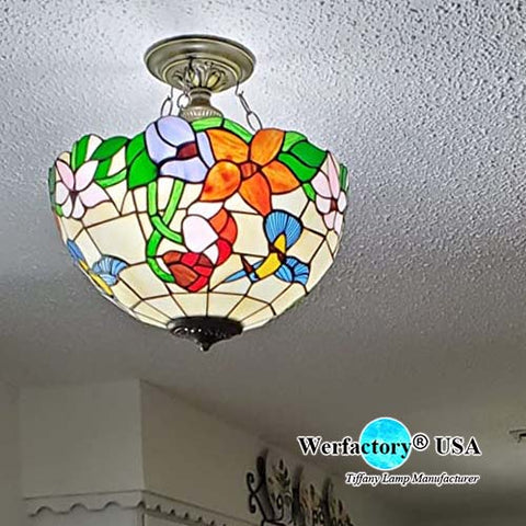Its Werfactory Ceiling Glass Lamp is able of eclipsing many other lamps in this list of attributes in the price range. The Werfactory ceiling lamp can be installed with ease following the installation guide It comes with a gorgeous gift. It comes with a stained glass lamp shade and is unique in design. The incandescent bulb that comes with it will heat up, take it out and remove it after you have tested the lamp's operation.